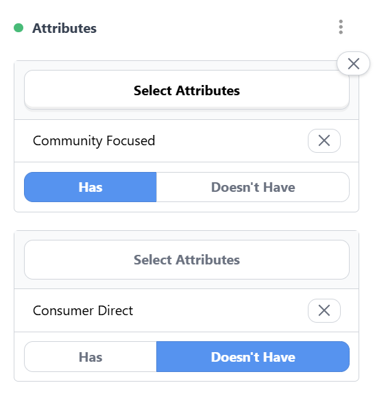 - To exclude this second trait, toggle the option from "Has" to "Doesn't Have".